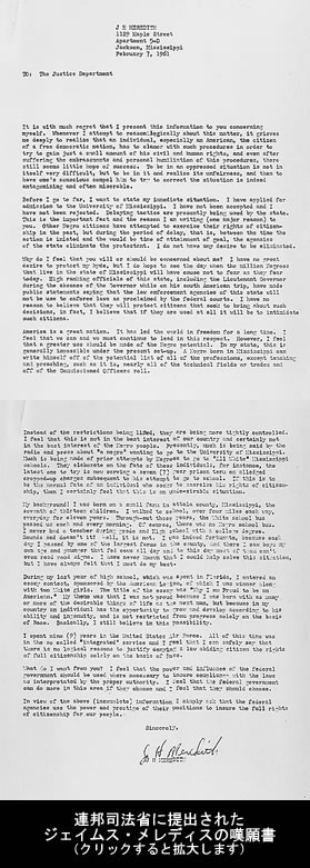 の表向きの理由は、願書の提出が締め切り日を過ぎていたこと。しかしながら、彼の成績が不合格の理由ではなかったのです。この当時のミシシッピ大学は、高等教育機関というよりも、むしろミシシッピの上流階層が親交を深める場、ミシシッピだけで通じるステータス・シンボルであり、そこの黒人が加わることなど、ミシシッピ大学当局には許せるはずがなかったのです。